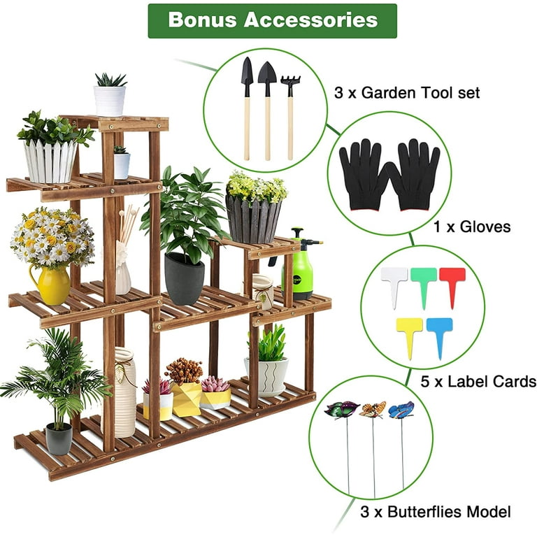 Plant Stand 7 Tier 13 Potted Wood Multiple Plant Stand For Indoors Outdoors Plant Shelf With Gardening Tool Set Space Saving Flower Stand For Patio Balcony Garden Living Room Walmart Com